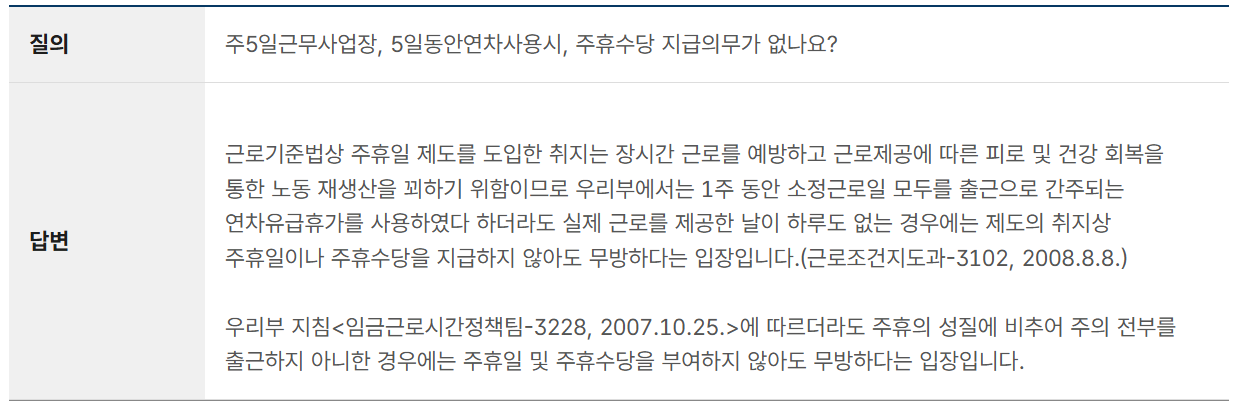 그런데 주 5일을 모두 연차로 사용한 경우라면? 논쟁이 존재합니다.