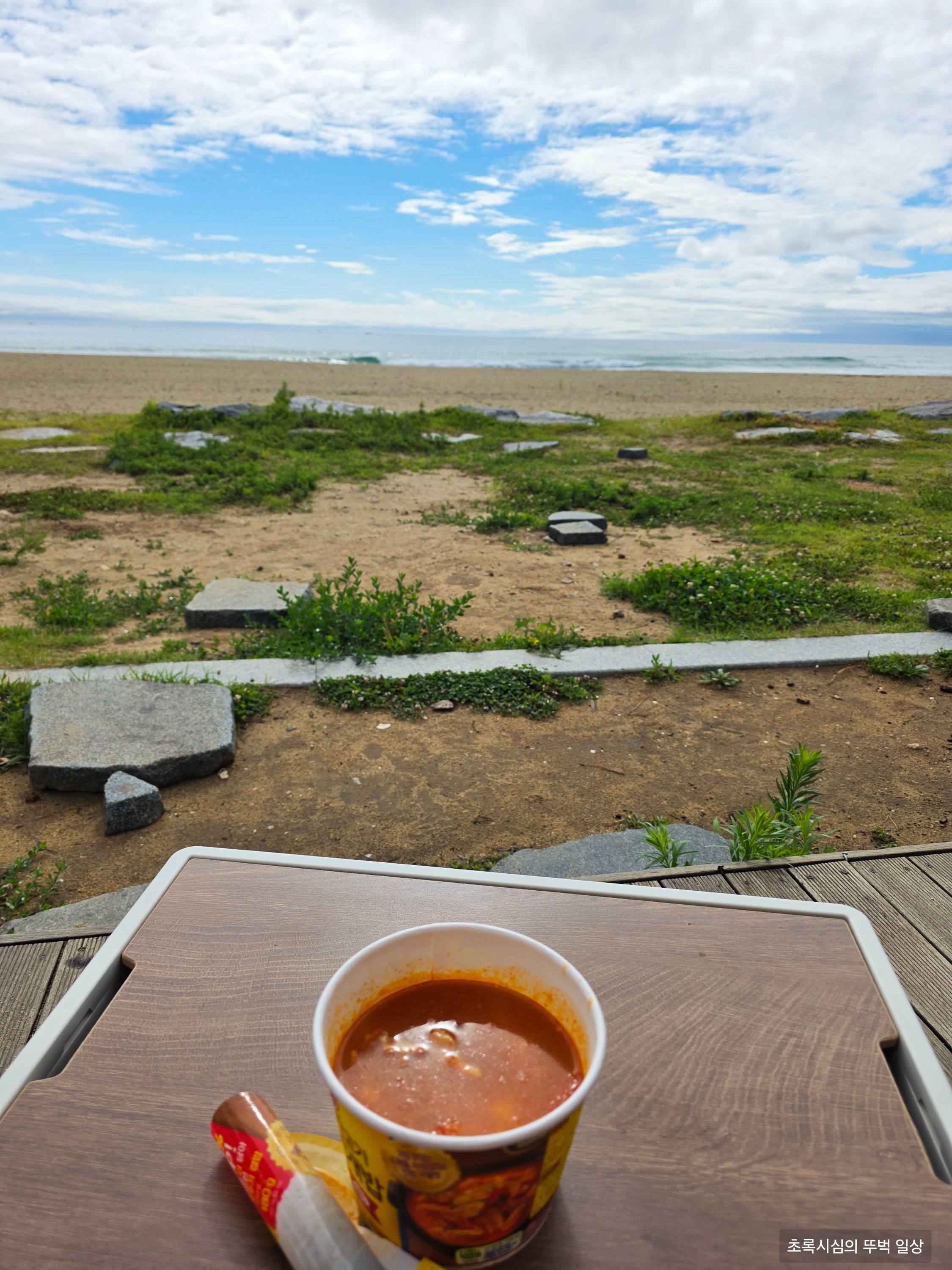 앞이 뻥 뚫린 바다전망이고 개수대, 화장실, 관리실 다 가까운 명당이라 할 수 있겠습니다.