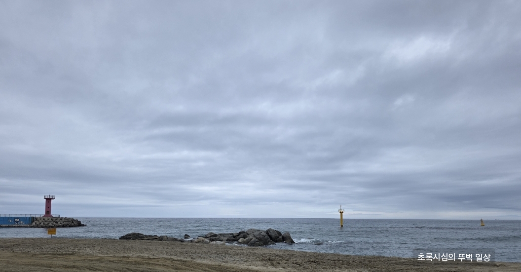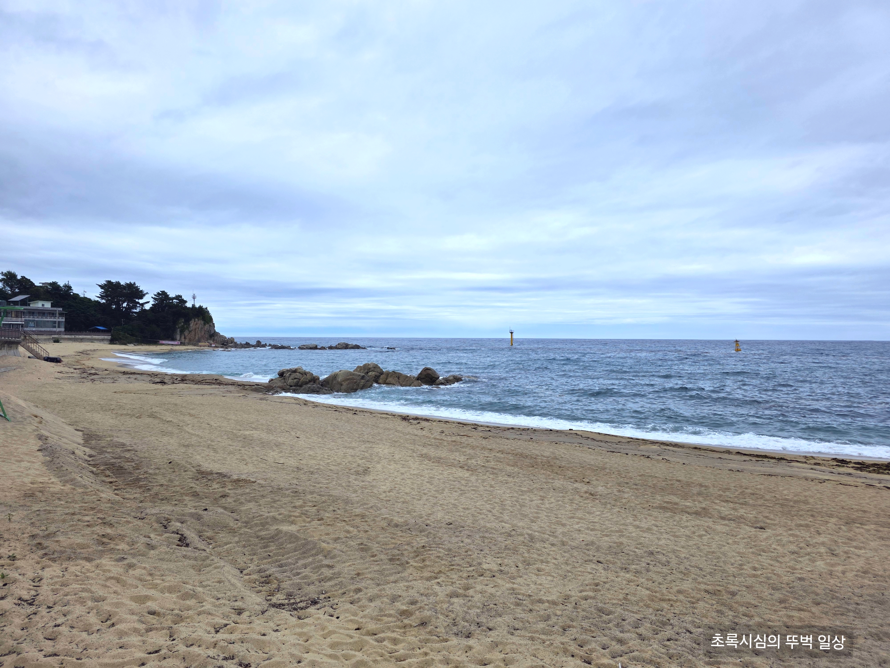 사진은 해수욕장 개장 전인 초여름, 흐린 날에 다녀온 것임을 참고해주세요:) 날이 맑으면 푸른 에메랄드빛 고성바다를 볼 수 있을 거예요.
