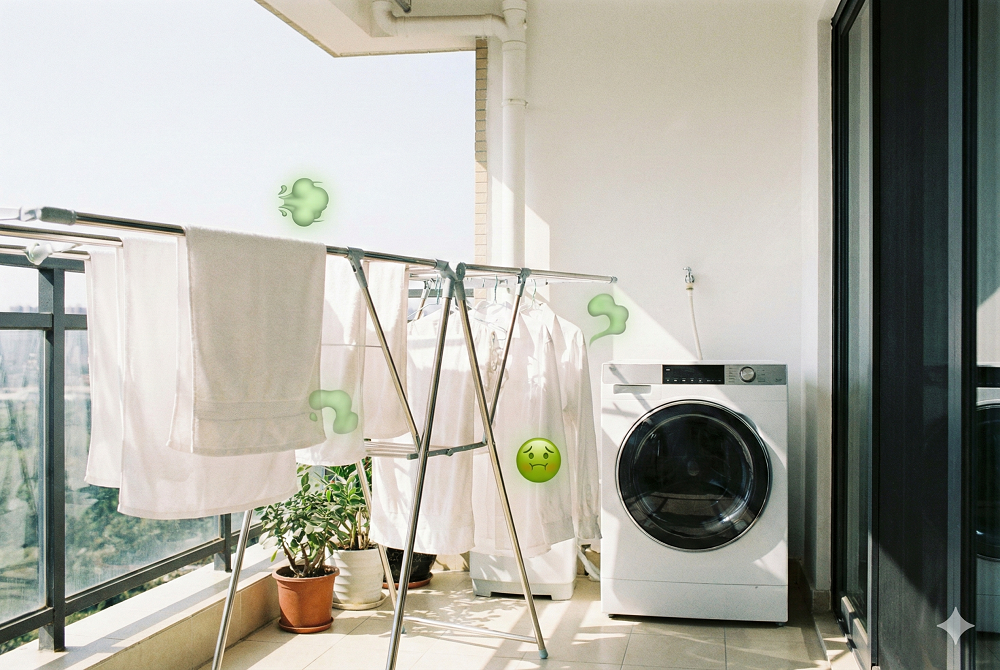 빨래가 천천히 마를수록 섬유 속에 세균이 잔존할 확률이 높아지고, 이는 곧 악취로 이어집니다.
