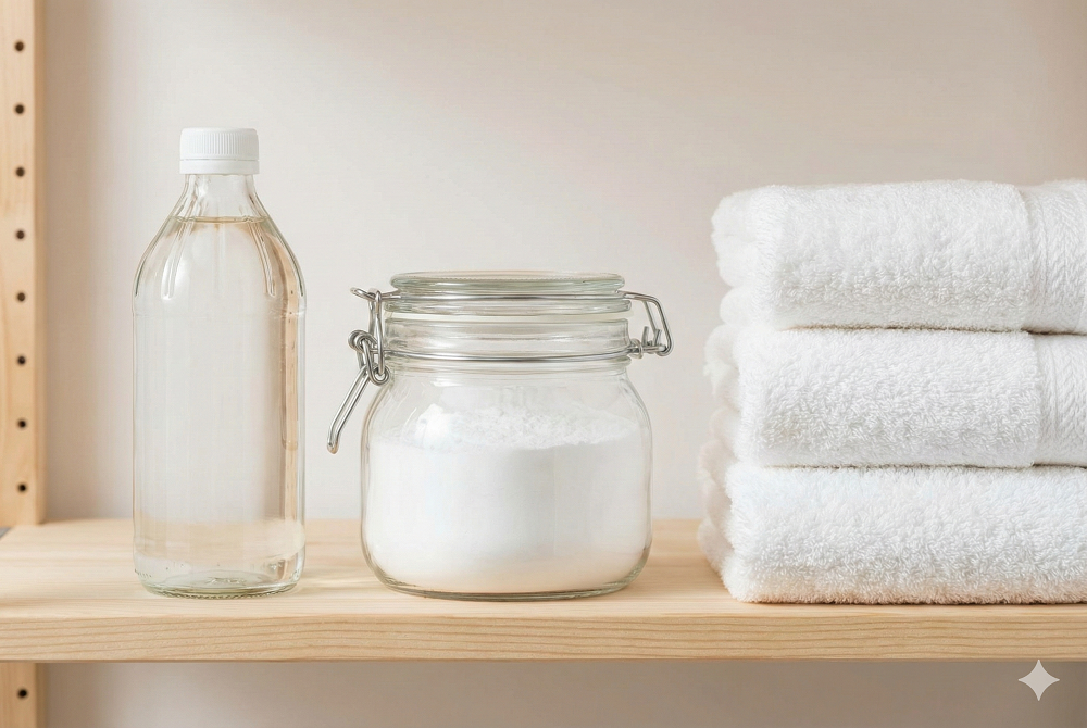 마지막 헹굼 때 식초 종이컵 반 컵을 넣어보세요. 식초가 만능 살균제는 아니지만, 섬유에 남은 알칼리성 세제 찌꺼기를 중화하고 냄새를 완화하는 데 도움을 줍니다. 섬유유연제 대신 사용하면 꿉꿉함을 줄이는 데 효과적입니다.